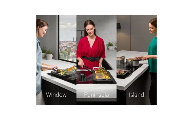 Тази комбинация от индукционен плот с мощен вграден аспиратор Ви дава необходимата свобода в дизайна на кухнята. Сега имате повече място за Вашите уникални идеи за оформление на кухнята.
