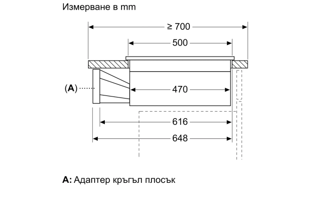 • Подходящ за конфигурация с екстракция чрез въздуховод или рециркулация (вкл. Диференцирани софтуерни режими). Необходими задължителни аксесоари за инсталиране: - HEZ9VEDU0 за монтаж с отвеждане на въздуха - HEZ9VRPD0 за рециркулация и отвеждане на въздуха през цокъла или под шкафа с филтри за миризма cleanAir. -HEZ9VRUD0 за рецуркулация без отвеждане в тръби с филтри за миризми cleanAir.