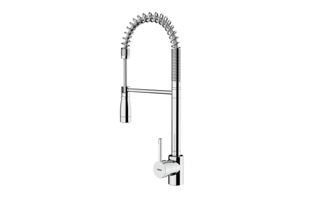 Teka Ares K 939 е висококачествен кухненски смесител от масивен месинг с хром покритие, създаден за удобство и дълъг живот. Подвижният душ предлага 2 вида струи за различни задачи (измиване, изплакване), а въртящият се чучур улеснява работата в по-големи мивки. Вградената керамична глава осигурява плавно управление и издръжливост, а аераторът против варовик намалява отлаганията и улеснява почистването. Моделът се предлага с 6 години гаранция на керамичната глава.