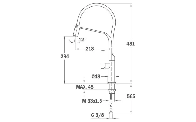 • Височина в статично положение до чучура/общо: 284/481 мм