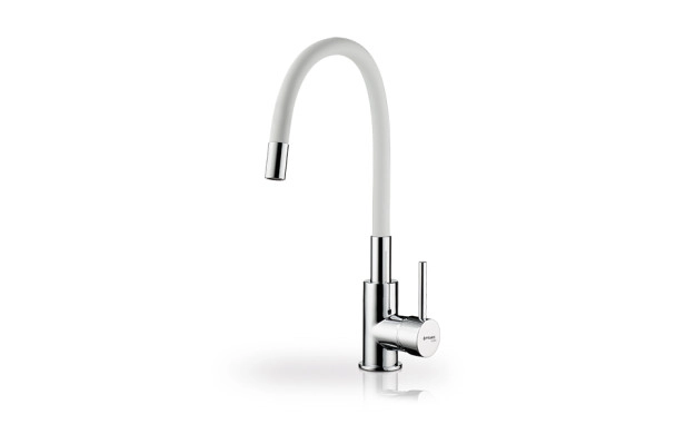 Различното при Кухненски смесител Pyramis Elvira - бял или черен е това, че чучура(лебедката) е изработена от каучуков материал, който е изключително гъвкав. Освен приятния цвят, който внася свежест в дизайна и възможността да позиционирате водата точно където ви е нужна е изключително удобно.