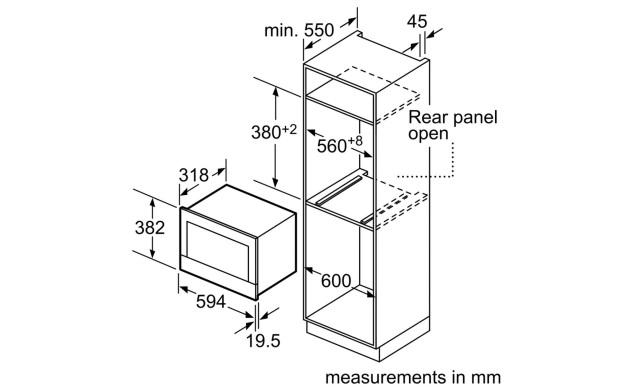 Техническа информация за Микровълнова фурна за вграждане BOSCH BFL634GS1: