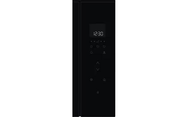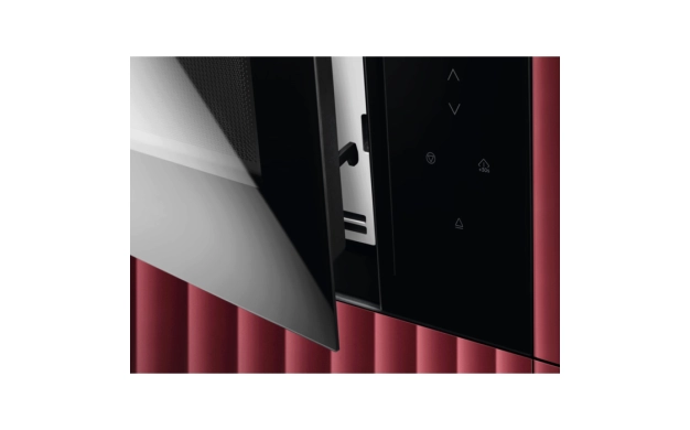 • Елегантният минималистичен дизайн на микровълновата фурна в черен гланц се съчетава с фурната и другите уреди.