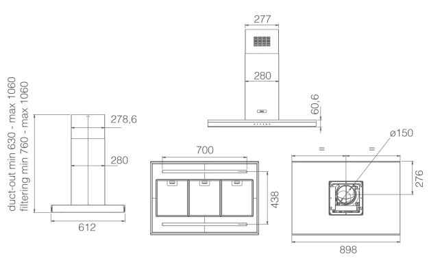 • Диаметър на изходна тръба ø 150