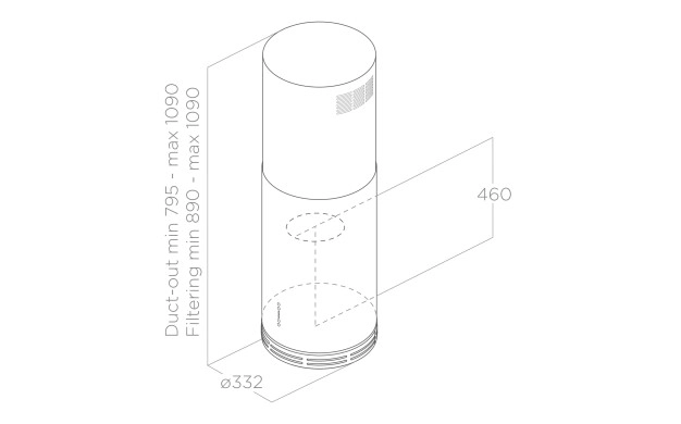 • Аспираторът ZENITH II IX/A/33 за островен монтаж на Elica е изцяло изработен от цилиндър неръждаема стомана, оборудван с двигател проектиран по специалната технологията даващ възможност за постигне 425 Pa налягане, докато нивата на шум са чувствително по-ниски. Системата за изсмукване е уникална по рода си и е скрита в цилиндричната форма, която се спуска от тавана директно върху плота.