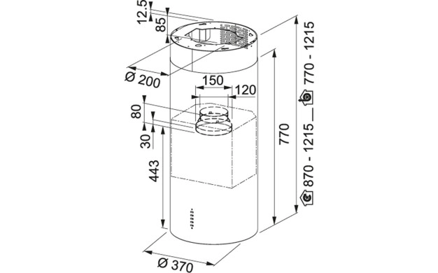 • Диаметър на изходна тръба ø 150