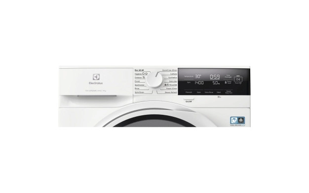 • Програми: Quickcare 69Min, Памук, Синтетика, Деликатни, Вълна/Коприна, Бърза 20 мин., Пара освежаване, Центрофуга / Изпомпване, Изплакване, Спортни дрехи, Олекотени завивки, Връхни дрехи, Хигиенизиране, Eco 40-60