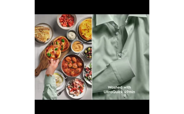 • UltraQuick 49мин. е енергийно ефективна, мощна програма. При ниски температури (30°C) и за кратко време (49 минути) осигурява резултати без петна за смесено пране от памук и синтетика. Просто добавете сушене за цялостна еднократна грижа за дрехите.