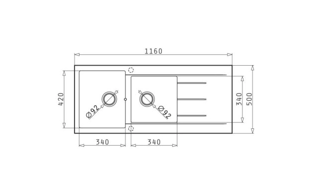 • Без отвор за смесител (обръщаема) – По желание на клиента можем да пробием отвор за смесител. Услугата влиза в цената на мивката.