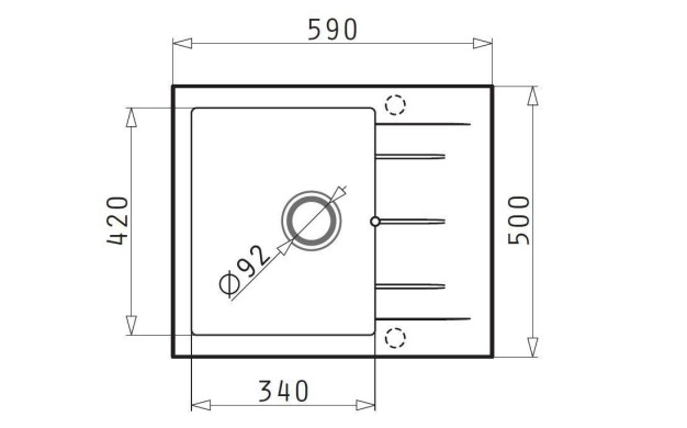 • Без отвор за смесител (обръщаема) – По желание на клиента можем да пробием отвор за смесител. Услугата влиза в цената на мивката.