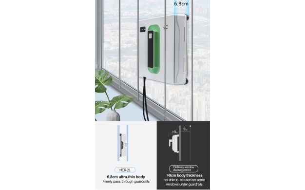 • HCR-21 Panavox e усъвършенстван робот за почистване на прозорци с мощност на засмукване 2500Ра, оборудван с интелигентна технология и няколко режима за автоматично почистване с и без пръскане на вода. HCR-21 може да почиства вертикално и хоризонтално, като четирите му прецизни сензора откриват ръбовете, рамките и препятствията, като така предпазват робота от падане.
