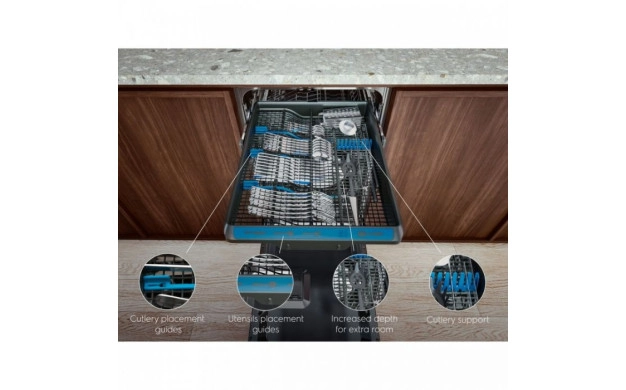 Третата кошница MaxiFlex е проектирана да побира прибори с почти всякакви размери и форми. Независимо дали са големи или с нестандартна форма, те се зареждат с лекота благодарение на подвижните разделители и допълнителната дълбочина.