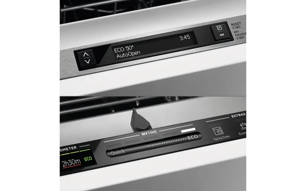 • QuickSelect предлага оптимален контрол над съдомиялната машина. Изберете продължителността на цикъла с плъзгача и добавете допълнителни опции само с едно докосване. След това машината ще свърши останалото. Получавате персонализирано измиване в удобно за Вас време за безупречно чисти съдове.