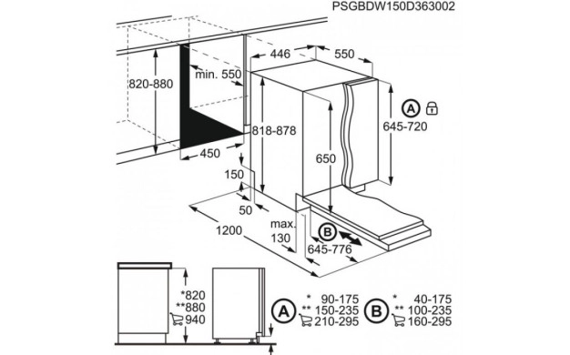• Размери за вграждане ВxШxД (мм): 820/900 x 450 x 550