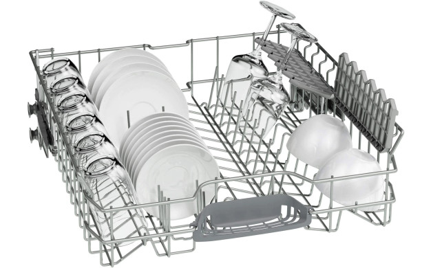 • Rackmatic + Flex кошници – регулируема горна кошница и възможност за прегрупиране на елементите, така че да поберете както високи чаши, така и обемни съдове.