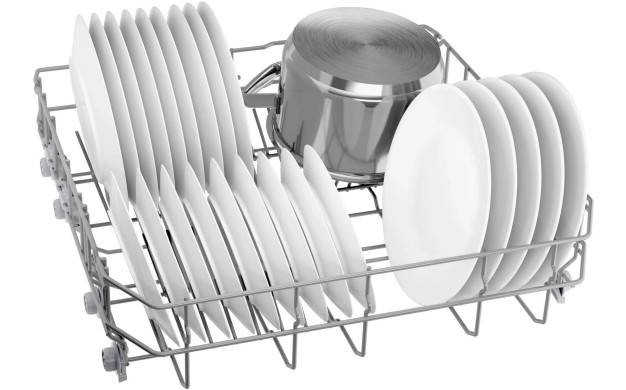 Bosch SMV2HVX06E е съдомиялна за пълно вграждане от Серия 2, проектирана за домакинства, които търсят надеждност, лесно управление и перфектни резултати при всяко измиване. С ширина 60 см и капацитет до 14 комплекта съдове, моделът комбинира доказаното немско качество на Bosch с модерни функции като ExtraDry, интелигентна свързаност Home Connect и гъвкава вътрешна организация на кошниците. Идеален избор за стилни кухни, при които уредите остават скрити зад мебелни фронтове, а дизайнът е хармоничен и минималистичен.