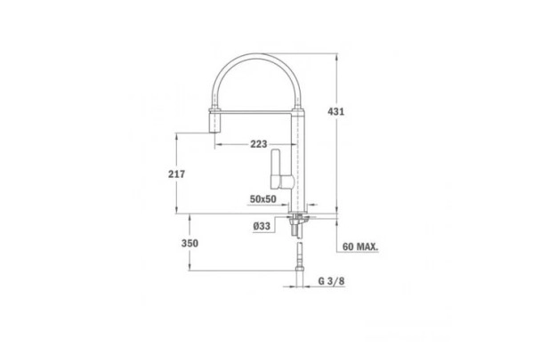 • Височина в статично положение до чучура/общо: 217/431 мм