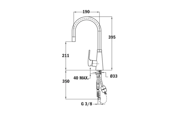 • Изтеглящ се душ – удобство при измиване на по-големи съдове и почистване на мивката.