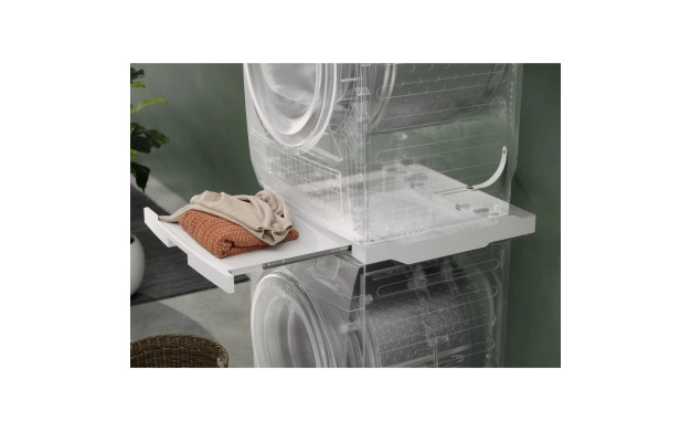 • С нашата свързваща лайсна можете лесно да инсталирате Вашата сушилня над пералнята. А вграденият плъзгащ се рафт го прави лесен за използване. Подходящ за всички перални и сушилни с предно зареждане с дълбочина от 52 до 67 см.