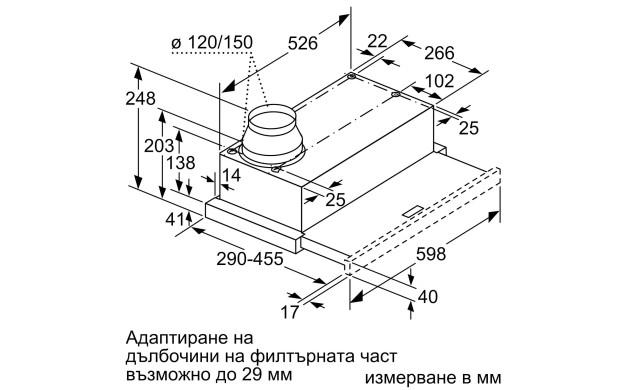 Тип на аспиратора Аспиратори за вграждане с телескопично отваряне
