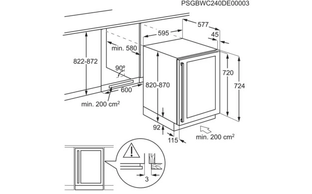 • Размери за вграждане ВxШxД в мм: 822x600x550