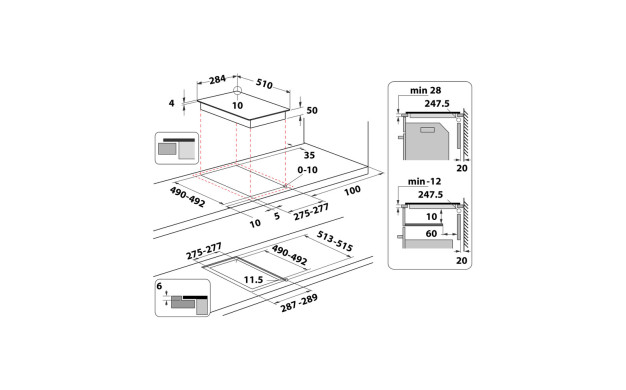 Размери за вграждане (мин.) Височина ниша: 28 мм; Ширина ниша: 275 мм; Дълбочина ниша: 490 мм