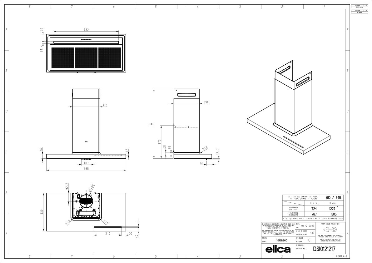 Това не е просто аспиратор, а дизайнерски елемент, който допълва кухнята като мебел. В същото време предлага реална и ефективна аспирация с дебит 205 – 680 m³/h (EU стандарт), оптимизиран за ежедневна употреба без излишен шум.