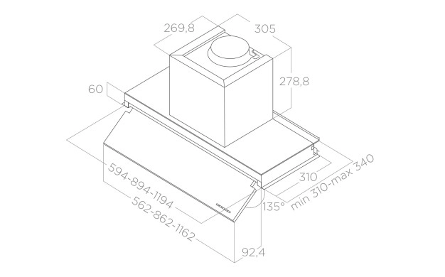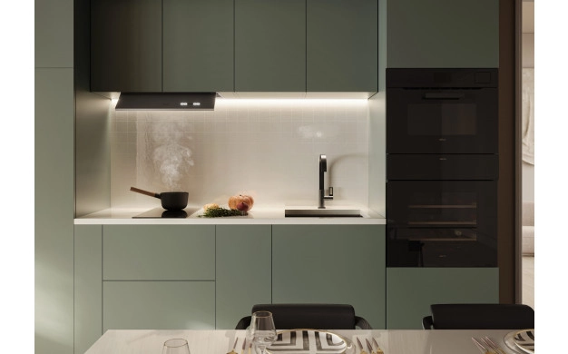 • Аспиратора е изключително подходящ да се комбиниран с индукционен плот. Изцяло покрива дъното на шкафа за да го предпази от влагата и е снабден със система NoDrip - Без конденз в зоната за готвене