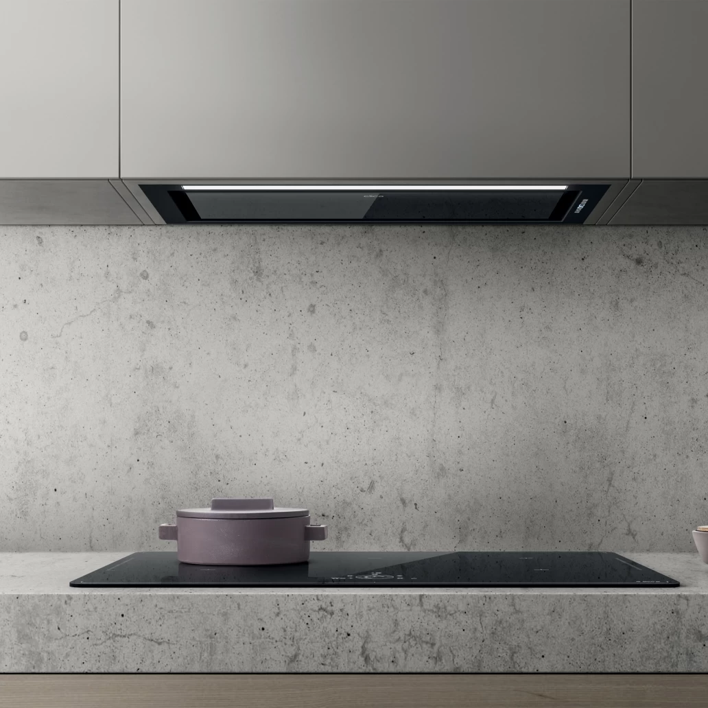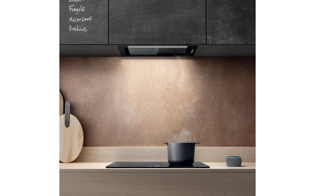 • Пълна свързаност, с приложението и с аспирационния плот. Скритият дизайн крие система за изсмукване, която е винаги свързана, способна да комуникира с вас и с плота. Контролирайте кога да го включите и променете настройките чрез приложението Elica с вашия смартфон или гласов асистент. Чрез връзката чрез Bluetooth към плота и интелигентните сензори, той се настройва сам, когато открие определени количества изпарения, като съответно активира необходимата мощност на изсмукване. Характеристиките му не свършват дотук: моторът от най-ново поколение осигурява безшумна работа дори при най-висока настройка на мощността и намалява консумацията на енергия; 3-фазното осветление ви позволява да избирате интензитета и температурата на светлината (от топли до студени тонове); изключителната лекота на използване е подобрена с известия от приложението, които ви напомнят кога да обслужите или смените филтрите с дълъг живот: те издържат 3 години (срещу стандартните филтри, които издържат само 3-6 месеца).