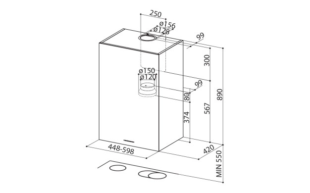 • Диаметър на изходна тръба ø 150
