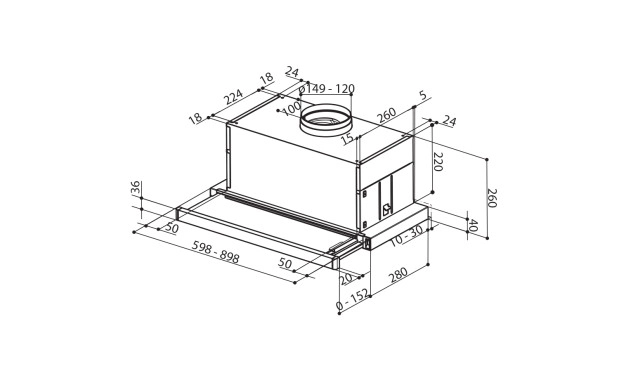 - Телескопичен аспиратор за вграждане