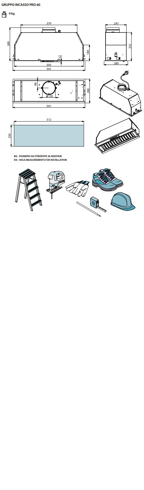 • Аспиратор Falmec Gruppo Incasso PRO 60
