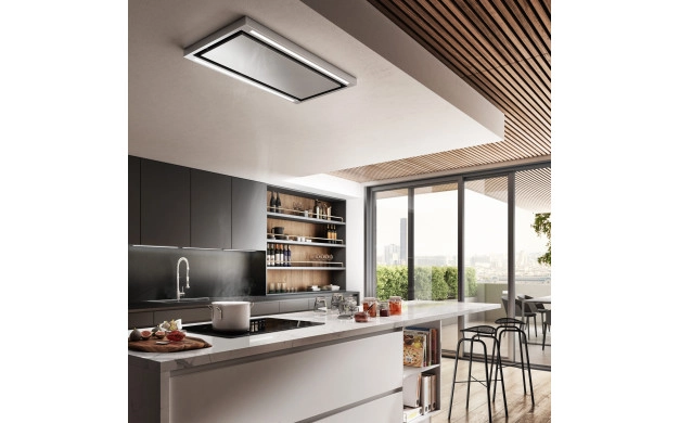С естетическа лекота аспираторът Cloud Seven е един супер красив и изчистен, изработен чрез модерни форми и материали, даряващ с въздух и светлина, там където имате най-голяма нужда. Моделът е таванен тип оборудван с двигател специално пректиран, за да предоставя необходимо високо налягане, ефективност и обслужване при намалена консумация за най-добра производителност. Моделът идва в комплект с дистанционно управление за всички функции на аспираторът. Системата за периметрална абсорбация дава възможност да се увеличи скоростта, с която готварските изпарения се поглъщат, подобрявайки ефективността на аспиратора. Чрез своето присъствие, или по скоро отсъствие, Cloud Seven е един дискретен елемент в обзавеждането Ви, който се адаптира към съвременната форма за идеален начин на живот.