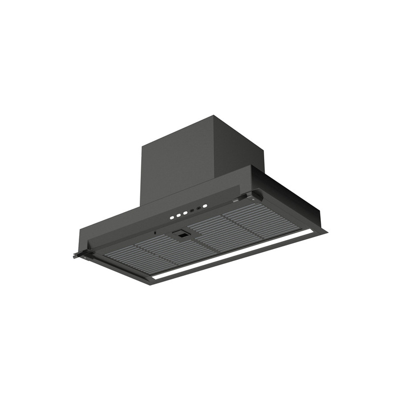 Аспираторът е проектиран за пълно вграждане в кухненски шкаф, което го прави почти невидим в интериора. Видимата част е минимална и е оформена с елегантен черен панел и сензорно управление.