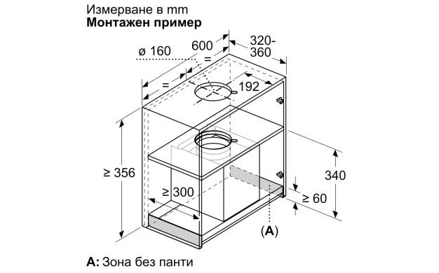 Минималната дистанция е 430 мм над електрически плот и 650 мм над газов плот (спазвайте указанията от ръководството за конкретния монтаж).
