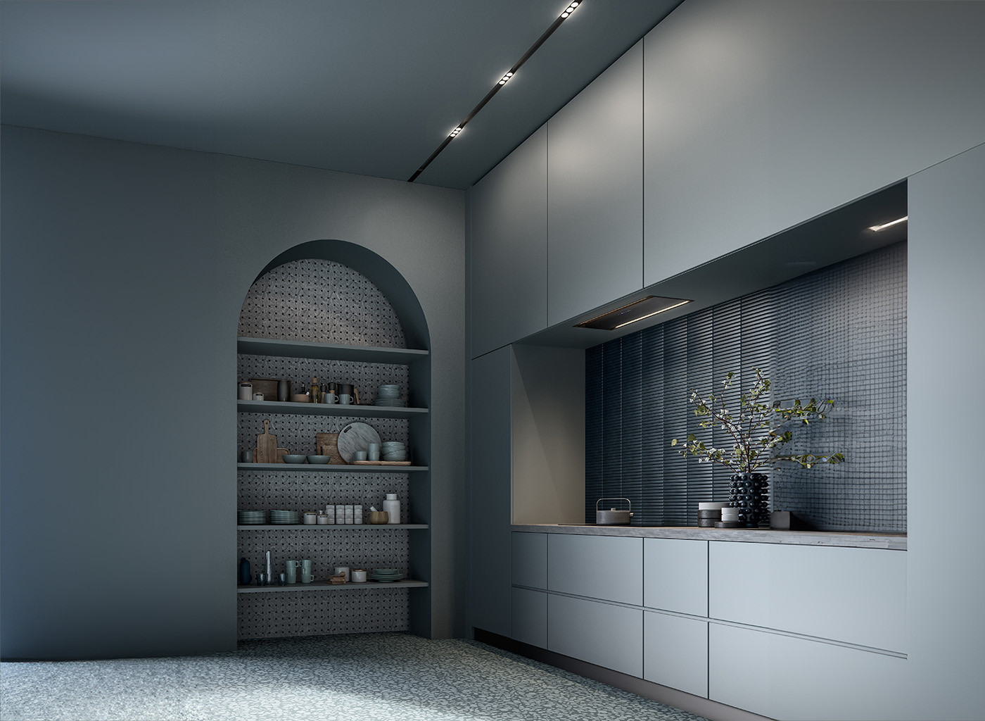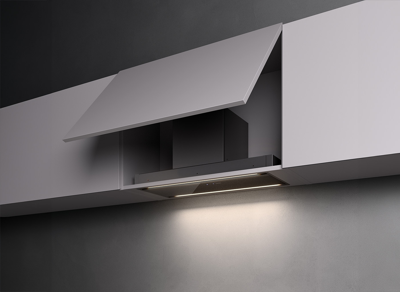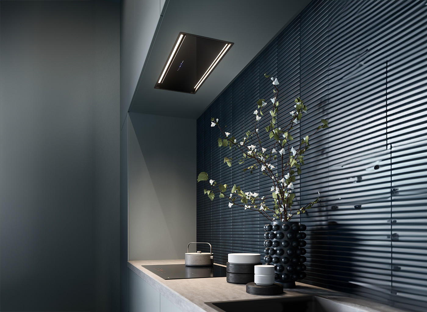Parallel Bk е част от Design колекцията на Falmec – серия с фокус върху минималистичната естетика и качествените материали. Повърхностите от боядисана черна стомана и закалено черно стъкло поддържат изчистена линия и се комбинират с черни уреди, тъмни кухни и иноксови акценти. Вграждането в шкафовете запазва визуалния ред и оставя на преден план плота и работната зона.