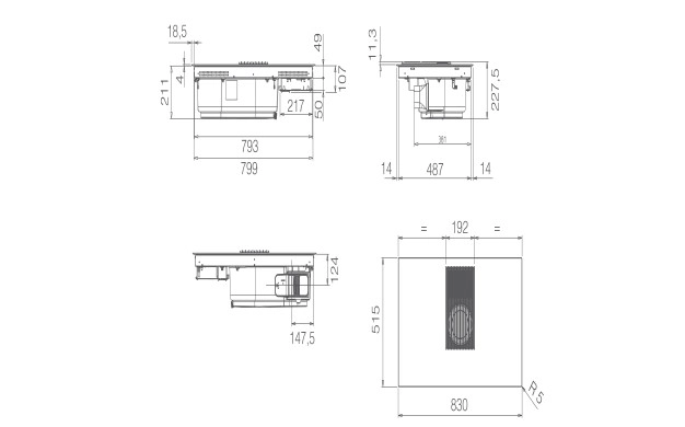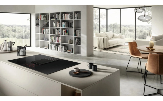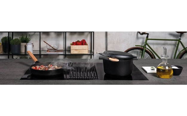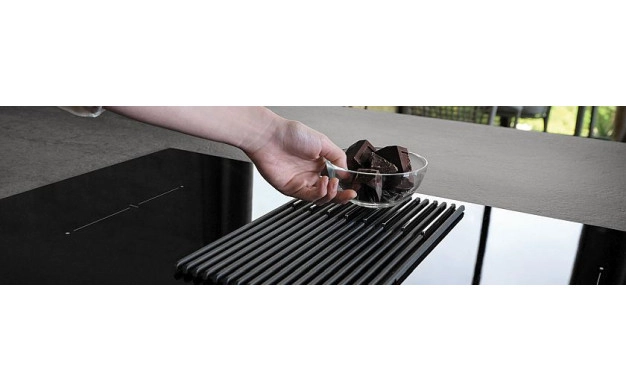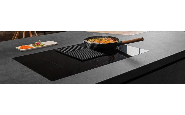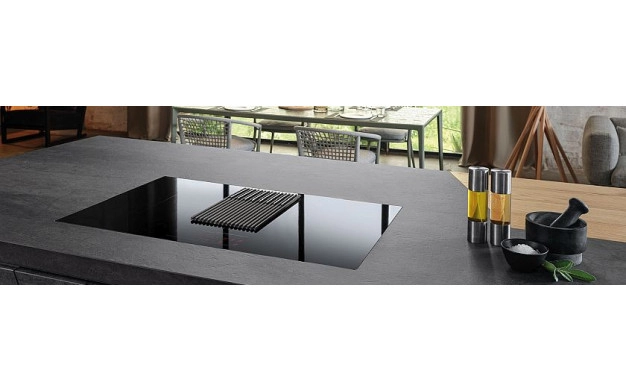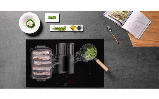 • Функцията AUTO CAPTURE настройва аспирационната система автоматично въз основа на броя и мощността на зоните за готвене. В предната част на плота има един контролен панел, чрез който контролирате както индукционните зони, така и аспирационната система с лекота. Новата естетика прави почистването лесно, както за стъклената плоча, така и за чугунената скара. Решетката може да се мие в съдомиялна машина, а с премахването й можете да извадите филтрите и да ги почистите и тях.