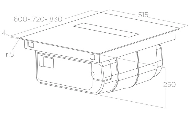 • Аспириращият плот, наличен в размери 60, 72 или 83 см, пасва идеално както на големи, така и на малки кухни. Неговата изтънчена текстура прикрива мощна система за изсмукване на въздух, активирана с просто движение на централната клапа.
