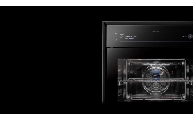 Една от ключовите причини X BO да е „професионална за дома“ е иновацията в почистването. Камерата се почиства чрез напълно автоматични програми – от бързо до интензивно почистване – с двукамерен почистващ патрон. След цикъла уредът прави ефективно сушене, така че в повечето случаи не се налага избърсване. Това е огромна разлика спрямо стандартните парни фурни, при които влагата остава по стените.