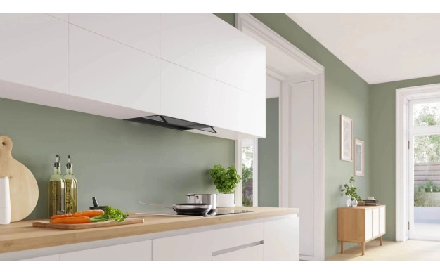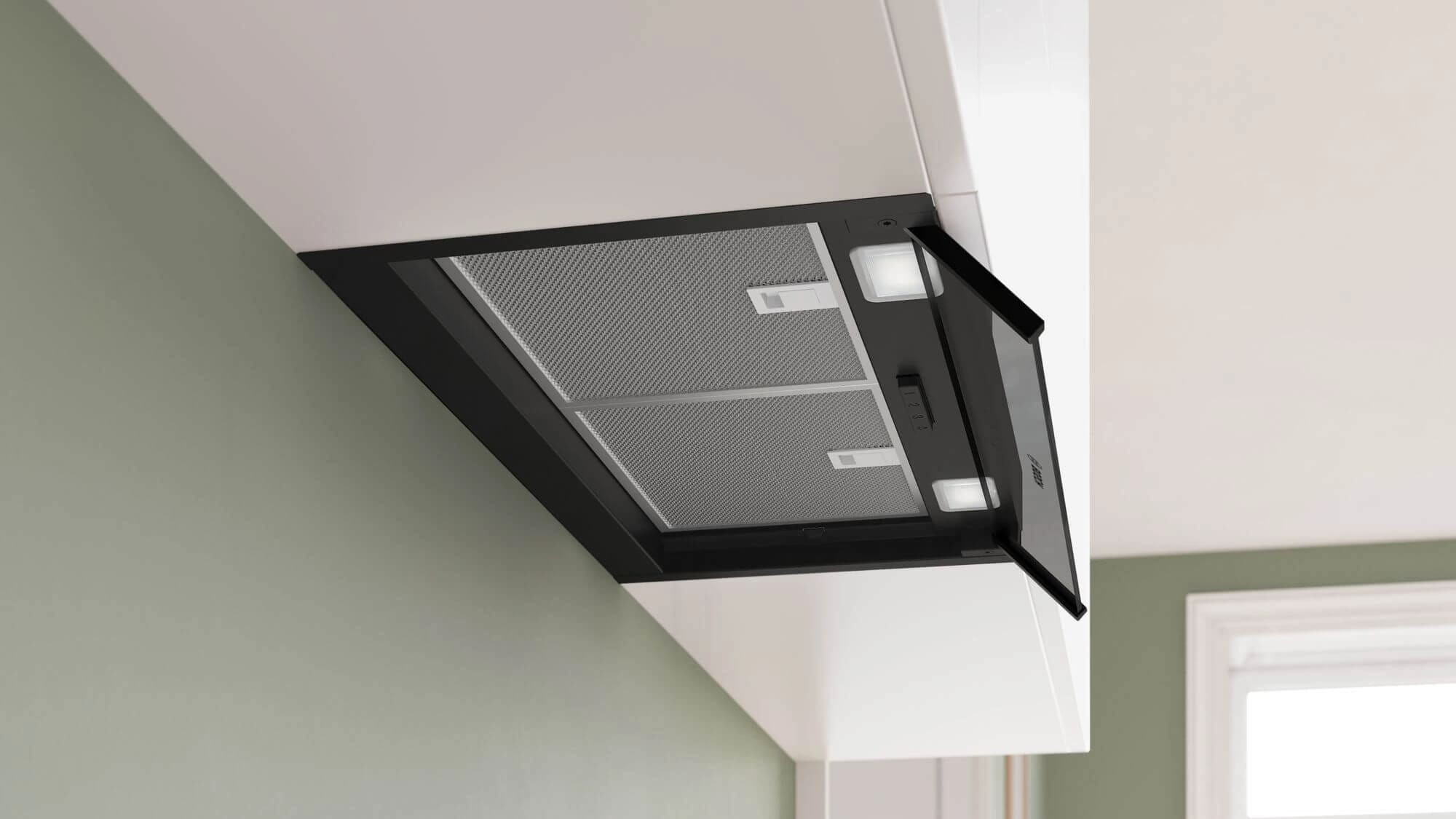 • Почти невидима интеграция – вграден монтаж в горен шкаф за чиста линия в кухнята.