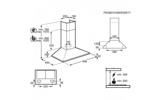 • Размери мин./ макс.: 690-1020x598x450