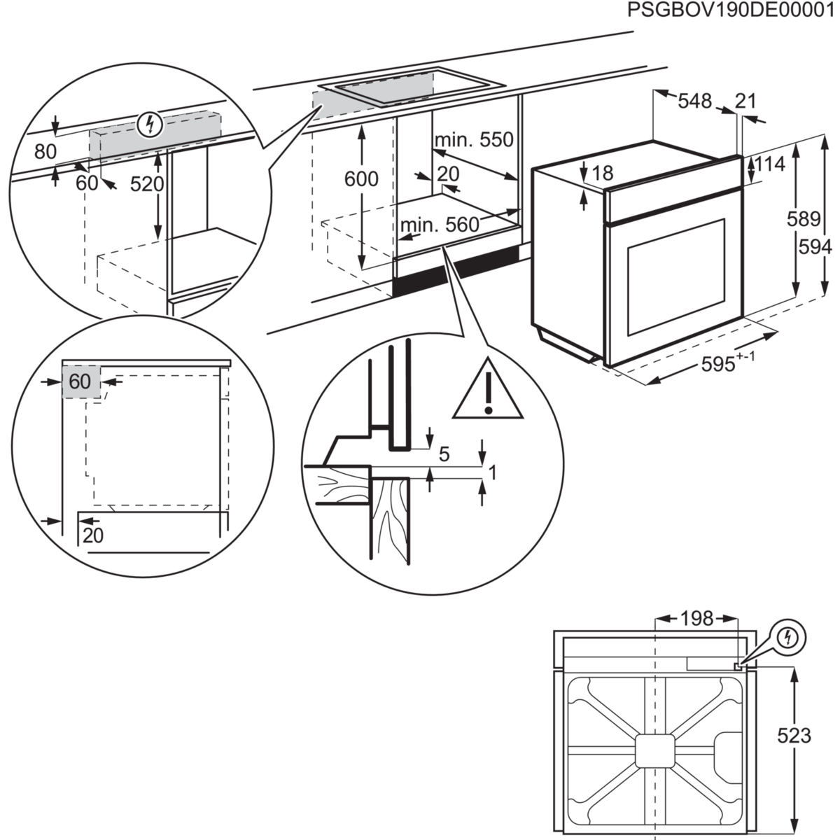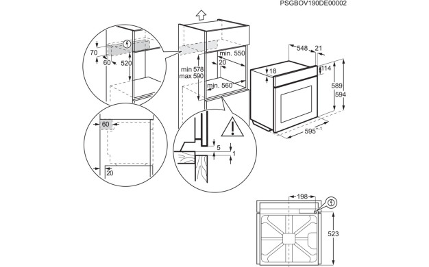 Размери за вграждане (В×Ш×Д) 590 × 560 × 550 мм