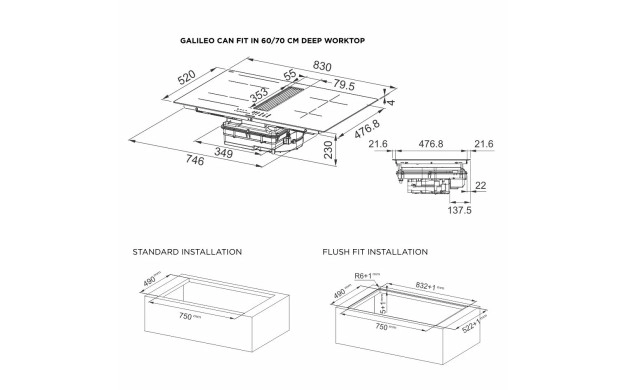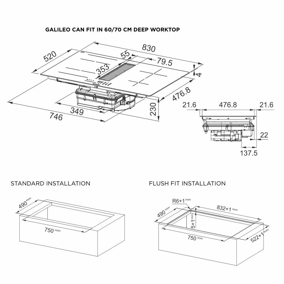 Galileo Linear A830 може да се планира според проекта – най-важно е да се предвиди подходяща инсталация (въздуховод/филтрация) спрямо кухнята. Ако ми кажеш дали имаш комин/възможност за тръба, ще препоръчам правилната конфигурация.