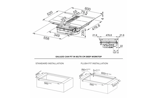 Galileo Slim F600 комбинира индукционен плот и аспиратор в едно устройство.
