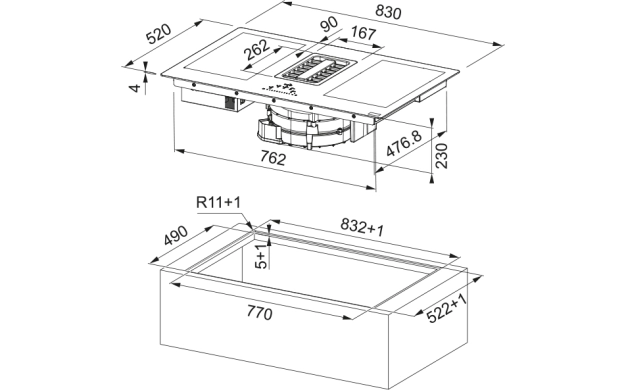 • 2-в-1 решение: индукционен плот + интегриран аспиратор в една повърхност