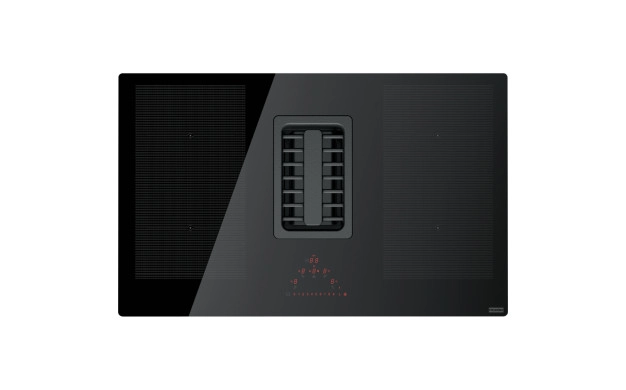 Уредът е 2-в-1: индукционен плот с напълно интегриран аспиратор в средата.