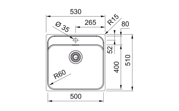 Мивка за база шкаф в см. 60