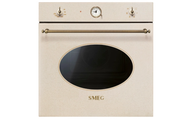 Фурна за вграждане SMEG SF800AVO Coloniale – ретро елегантност в цвят „Овес“ с месинг и 70 л обем