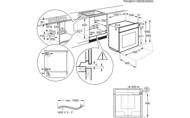 • Размери за вграждане ВxШxД в мм: 600x560x550
