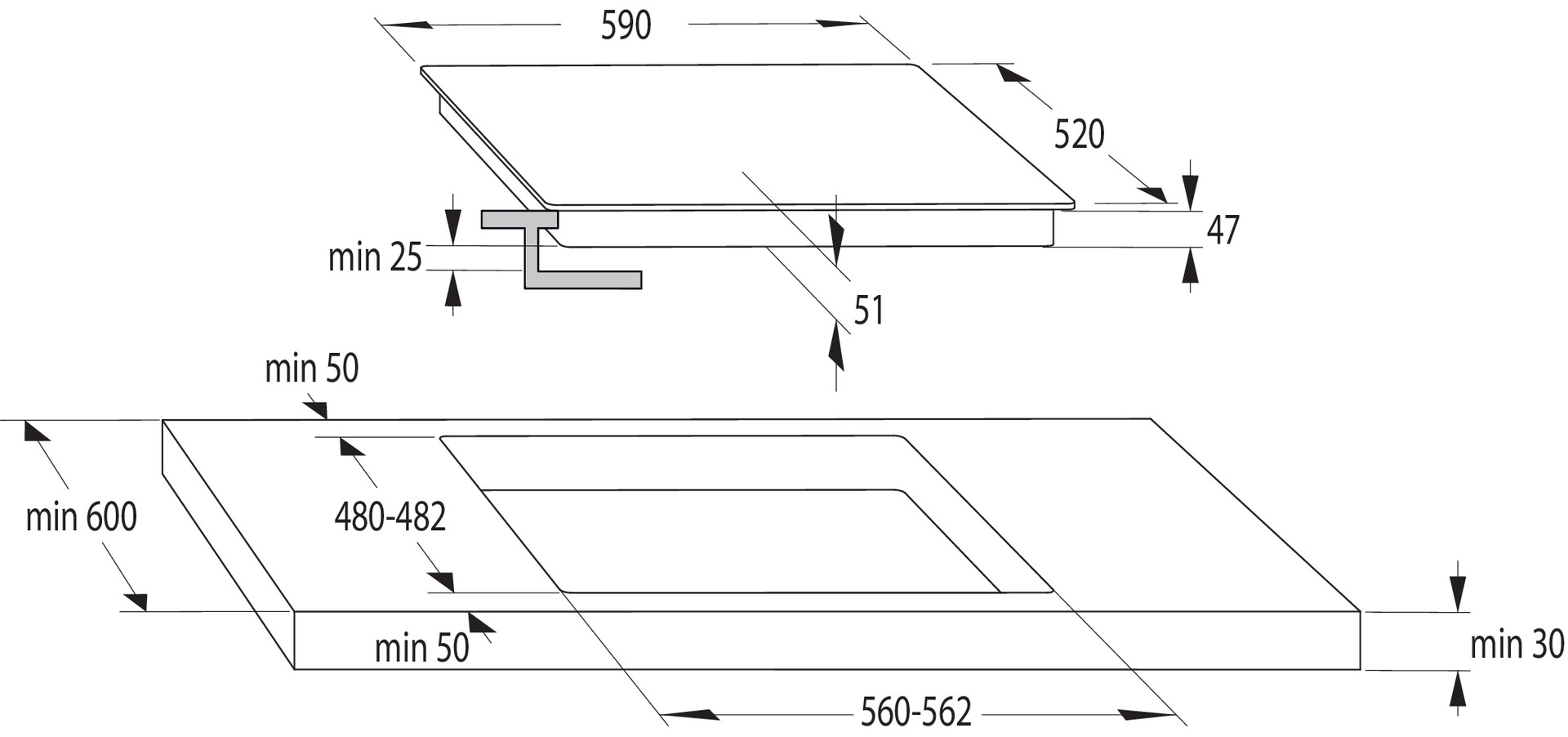Размери на монтажния отвор 560 × 490 мм